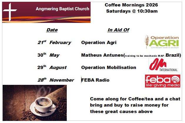 We have 4 Saturday Coffee mornings coming up in 2026.....